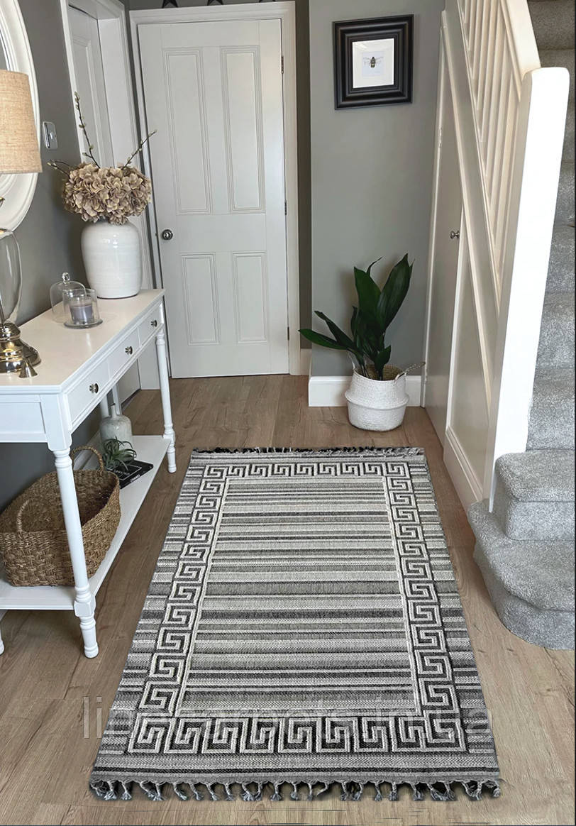 Скандинавські килими дизайнерські без ворсу турецького виробництва колекції CALIDO 08262A ANTHRACITE-BEIGE. Виріб виготовляється з якісного поліпропілену на сучасному обладнанні. Безворсові килими – стійкість до великої прохідності, забруднення та механічних пошкоджень. Ідеальний варіант для передпокою, коридору чи кухні. Виробник Туреччина.